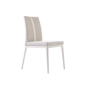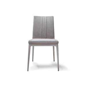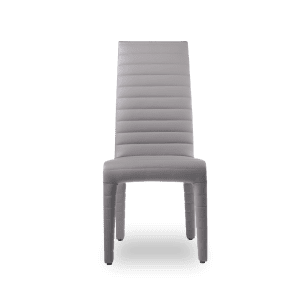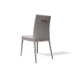 This elegant dining chair of the CUBe collection exudes luxury craftsmanship. It captivates the attention with its modern lines combined with noble metal accents at its top and feet and the posh upholstery with impeccable stitching. The double cushioning on the seat adds to the comfort level while its straight shape and unobstructed silhouette make it a timeless piece that elevates any dining table.
