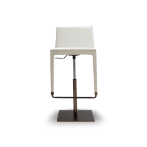 This adjustable bar chair of the CUBe collection exudes luxury craftsmanship. It captivates the attention with its modern lines combined with noble metal accents at its top and feet and the posh upholstery with impeccable stitching. The double cushioning on the seat adds to the comfort level while its straight shape and unobstructed silhouette make it a timeless piece that elevates your bar or counter.