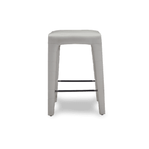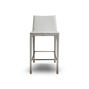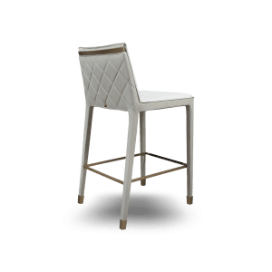 This bar or counter chair of the CUBe collection exudes luxury craftsmanship. It captivates the attention with its modern lines combined with noble metal accents at its top and feet and the posh upholstery with impeccable stitching. The double cushioning on the seat adds to the comfort level while its straight shape and unobstructed silhouette make it a timeless piece that elevates your bar or counter.