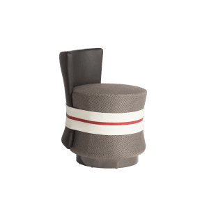 A transformation of one of the most traditional garments in fashion into a contemporary unique chair ? FASCETTA. The waisted shape is accentuated by a corset-inspired band with decorative laces to give it a playful yet sophisticated touch in the back while the front has an integrated footrest in a noble metal finish.