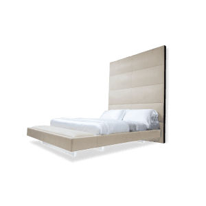 From the BOND Collection – introducing the BOND bed. This fashionable highlight of your bedroom invites you to rest and lets your mind fantasize. The diligently crafted headboard and bed frame are elevated by custom belts and buckles that serve as legs and provide an intriguing touch to this bed.