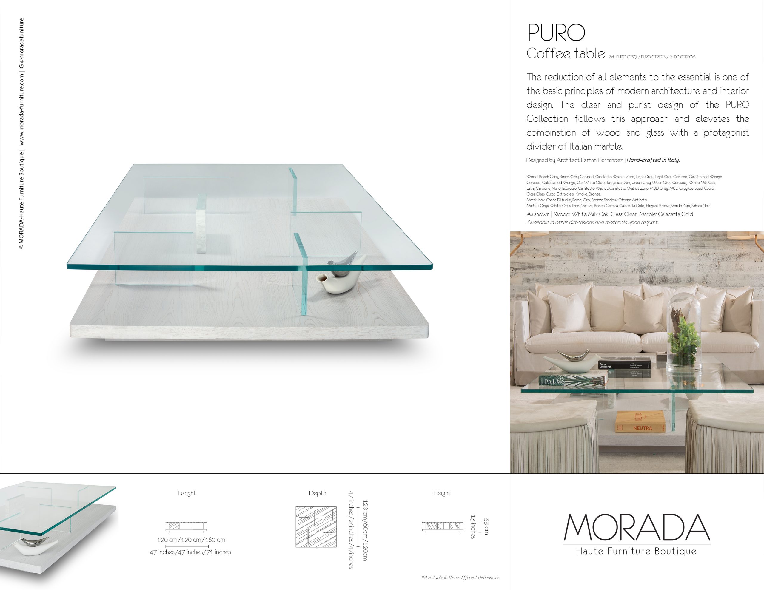 The reduction of all elements to the essential is one of the basic principles of modern architecture and interior design. The clear and purist design of the PURO Collection follows this approach and elevates the combination of wood and glass with a protagonist divider of Italian marble.