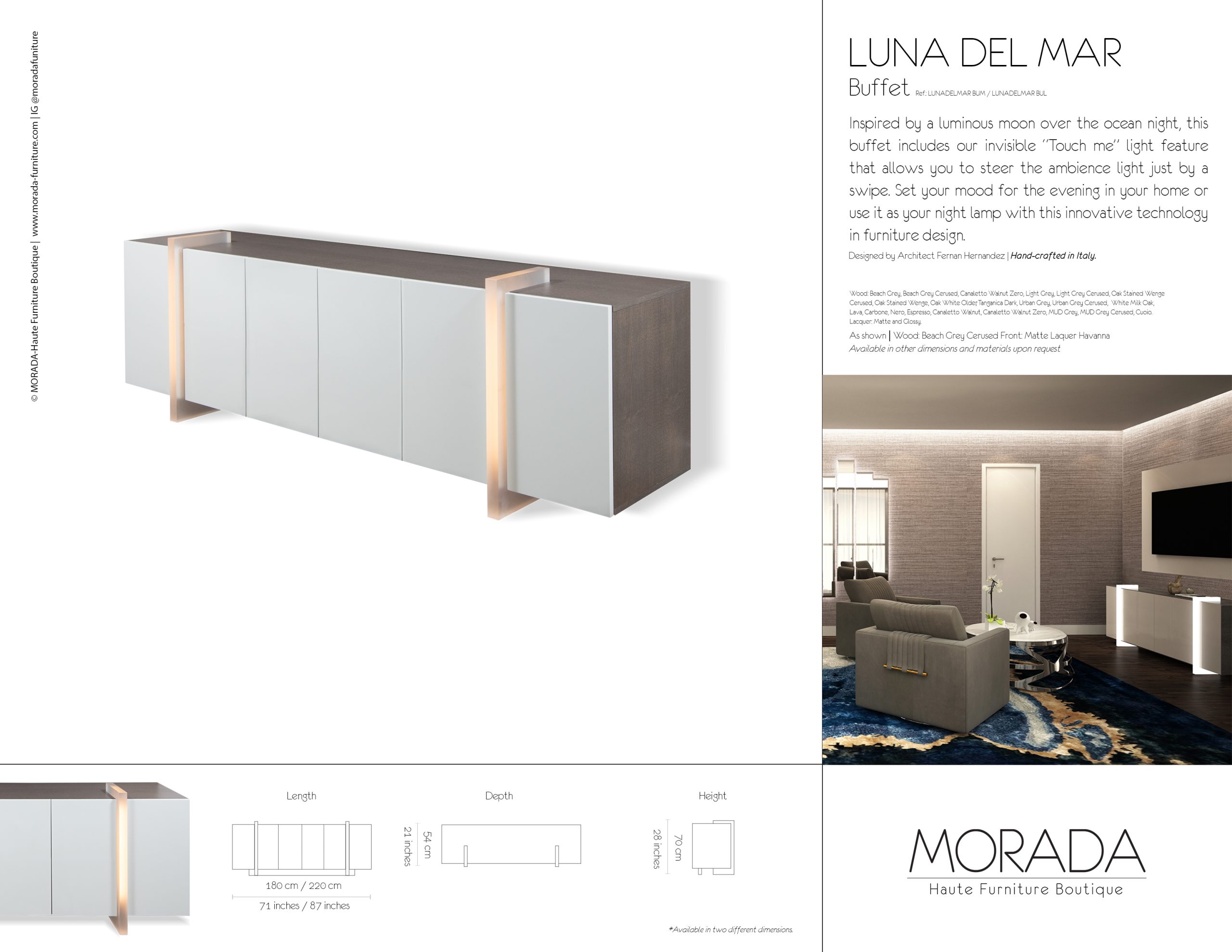 Inspired by a luminous moon over the ocean night, this buffet includes our invisible ‘Touch me’ light feature that allows you to steer the ambience light just by a swipe. Set your mood for the evening in your home or use it as your night lamp with this innovative technology in furniture design.